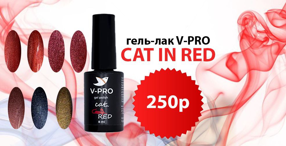 СУПЕР ЦЕНА НА КОЛЛЕКЦИЮ ГЕЛЬ-ЛАКОВ КОШАЧИЙ ГЛАЗ CAT IN RED ОТ V-PRO. ЧТОБЫ ПЕРЕЙТИ В КАТАЛОГ, НАЖМИТЕ НА БАННЕР