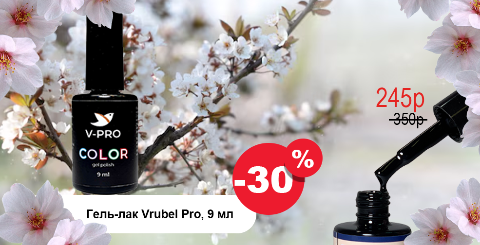 СКИДКА 30% НА ЛИНЕЙКУ ГЕЛЬ-ЛАКОВ V-PRO 9 ML, ЧТОБЫ ПЕРЕЙТИ В КАТАЛОГ, НАЖМИТЕ НА БАННЕР