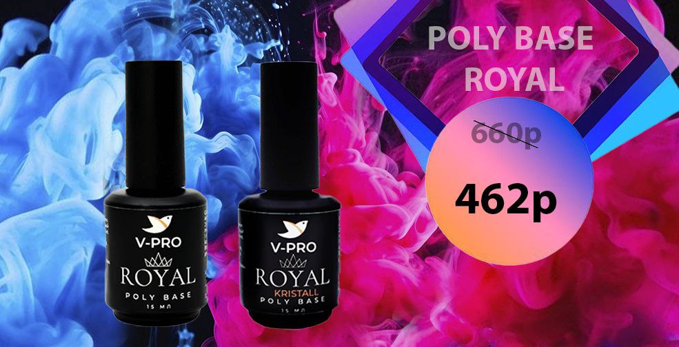 ДЕЙСТВУЕТ СКИДКА 20% НА СВЕРКАЮЩУЮ КОЛЛЕКЦИЮ ЖЕСТКИХ POLY BASE ROYAL CRISTALL, А ТАКЖЕ СНИЖЕНА ЦЕНА НА БОЛЬШИНСТВО ОТТЕНКОВ В ЛИНЕЙКЕ ROYAL, ЧТОБЫ ПЕРЕЙТИ В КАТАЛОГ, НАЖМИТЕ НА БАННЕР