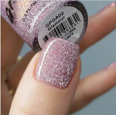 "Glamour" - сиренево-розовый лак с серебряным и розовым светоотражающим глиттером и оранжево-розовым пигментом Аврора, уходящим в золотисто-зеленый отлив.