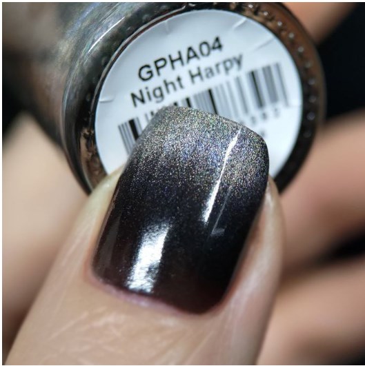"Night Harpy" - черное креле с магнитным голографическим пигментом лилового отлива.