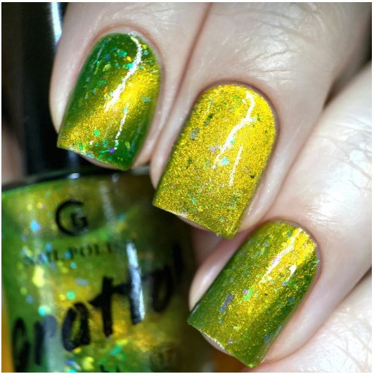 "Flittle" - чернично-бордовое желе с золотой, бирюзовой, синей и фиолетовой поталью с медно-розовым магнитным отливом.