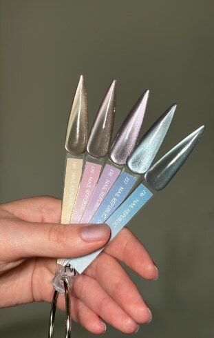4. Для получения эффекта «Кошачий глаз» поднесите магнит на расстоянии 1 см от поверхности ногтя перед полимеризацией последнего слоя гель-лака. Удерживайте 10 секунд.