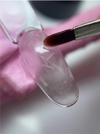 4. Стеклогели в большинстве случаев не требуют опила после нанесения на ноготь, так как стекловолокно легко утапливаются в гель и не торчит.