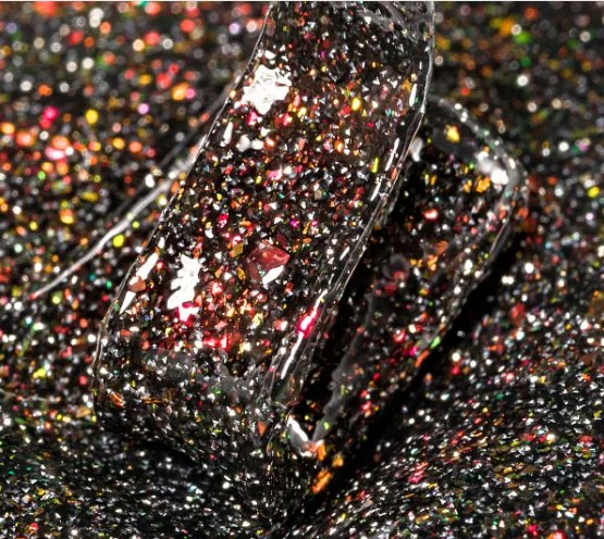 Моделирующий УФ-гель REFLECTIVE DIAMOND 3.0 в сером изысканном цвете с отражающими частицами и хлопьями юки — это идеальный выбор для создания утонченного и завораживающего дизайна прямо на этапе моделирования.