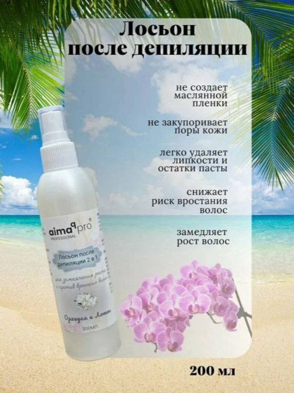 Лосьон для тела от вросших волос с экстрактом орхидеи и лотоса - незаменимый помощник в процедуре депиляции, пилинга. Лосьон после депиляции обезжиривает и очищает кожу от остатков пасты, снимает покраснение и раздражение после процедуры. Лосьон после депиляции способствует восстановлению, смягчает и увлажняет кожу. Увлажняющий спрей действует против вросших волос. Замедляет рост волос, и снижает риск их врастания.