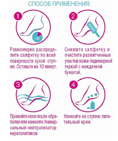 Салонное средство “Жидкое лезвие” экспресс размягчитель в саше исключает необходимость замачивания ступней ног, значительно сокращает и делает более комфортной процедуру необрезного педикюра. Пропитанная средством салфетка полностью распределятся по всей поверхности ступни клиента. Входящие в состав средства кератолитики быстро размягчают натоптыши и огрубевшую кожу (в т.ч. при гиперкератозе), позволяя очистить ступню педикюрной теркой без необходимости срезать и травмировать кожу. Состав “Жидкого лезвия” воздействует только на ороговевшие участки и не травмирует живые клетки эпидермиса. При регулярном применении средства стопы остаются нежными, надолго предотвращается образование трещин и натоптышей. Также средство можно использовать перед процедурой аппаратного педикюра.